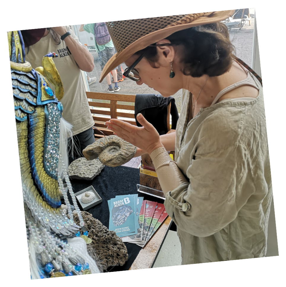 she sells seashells by the sea. Die Vision für meinen Artist-Table ist eine kleine Hütte am Strand, die Meeres-Fossilien verkauft. Mit ausgetüftelten Konstruktionen komme ich diesem Ziel immer näher. Markenzeichen sind die türkisen Farbtöne und die großen Ammoniten-Schilder.